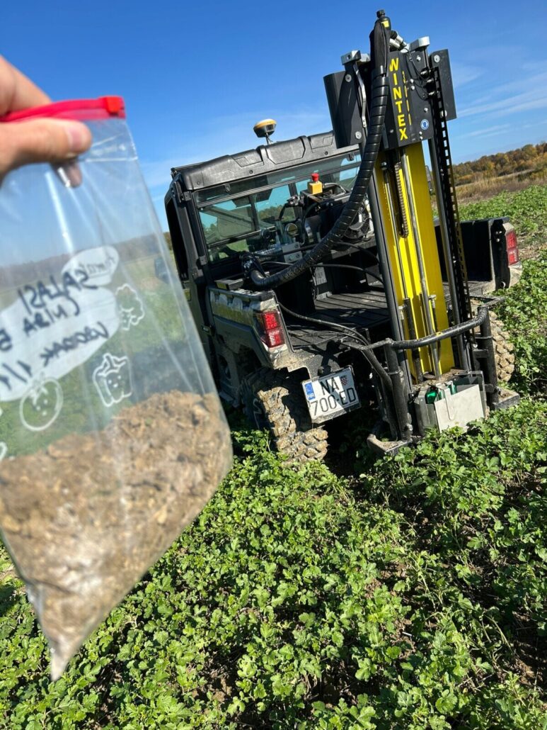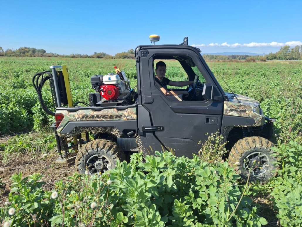 Ispričao nam je kako tvrtka Jerković preuzima cijeli proces uzorkovanja, od planiranja do isporuke gotovih preporuka. Poljoprivrednik dostavlja osnovne podatke o parcelama, a stručni tim izrađuje plan uzorkovanja, provodi terenski rad, obrađuje podatke i priprema karte. Posebna se pažnja posvećuje ravnomjernom rasporedu uboda jer je ručno uzorkovanje bez navigacije, osobito na većim površinama, vrlo nepouzdano. Zato se koristi vozilo s automatiziranom sondom opremljeno visoko preciznim RTK navigacijskim sustavom koji osigurava da se svaki uzorak uzme na točno određenoj lokaciji uz to da se u istim točkama može obaviti praćenje promjena nastalih tijekom godina.