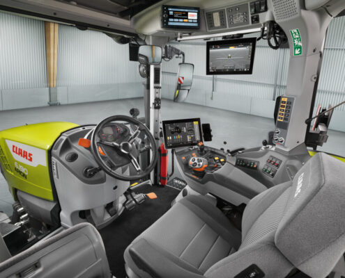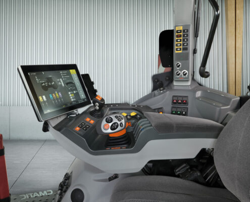 Multimedijski sustav s Apple CarPlay, Android Auto i DAB+ olakšava upravljanje parametrima, dok Cebis terminal nudi intuitivno rukovanje hidraulikom, PTO pogonom, Isobus-Ut uređajima i Cemos optimizacijom. Nova funkcija Auto Csm automatski aktivira pohranjene sekvence upravljanja uvratinama, dok Auto RefLine prepoznaje referentne tragove i automatski ih primjenjuje pri promjeni smjera ili kod obrade klinova, olakšavajući rad vozaču.